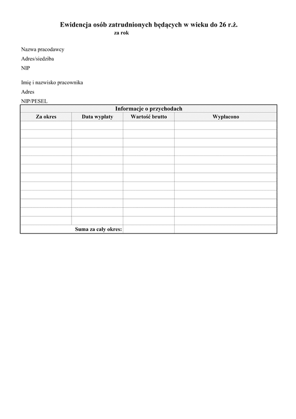 Osoby do ukończenia przez nie 26 roku życia korzystają ze zwolnienia z podatku z tytułu przychodów z umowy o pracę, zlecenie, pracę nakładczą stosunek służby, spółdzielczy stosunek pracy. Płatnik, który zatrudnia takie osoby zobowiązany jest przestrzegać limitu w danym zakładzie pracy, tzn.