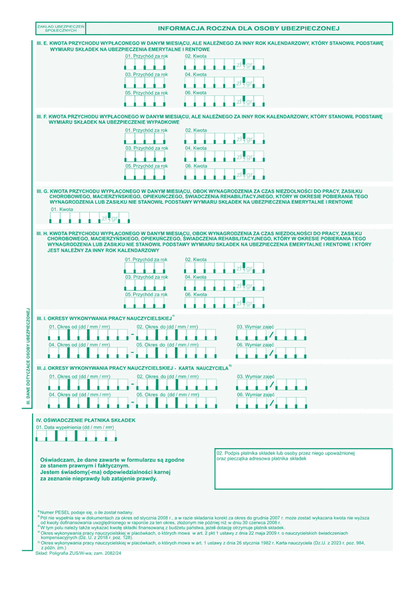 Informacja roczna dla osoby ubezpieczonej sporządzana jest raz na rok i wydawana jest w terminie do 28 lutego następnego roku za rok poprzedni. Może zostać wydana wcześniej na żądanie ubezpieczonego.