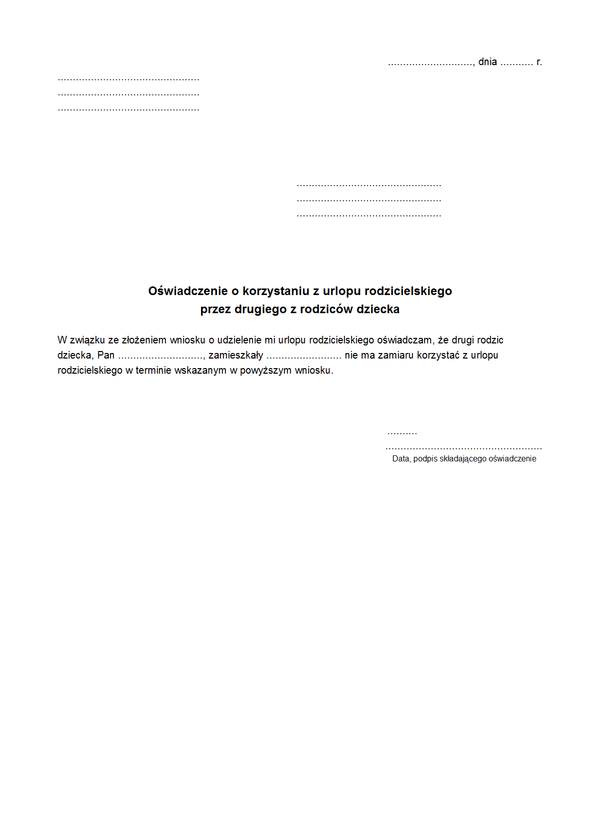 W przypadku, gdy matka dziecka zrezygnuje z korzystania z przysługującego jej urlopu rodzicielskiego, ojciec dziecka ma prawo wnioskować o przyznanie mu bezpośrednio po rezygnacji przez matkę dziecka, prawa do korzystania z tego urlopu.