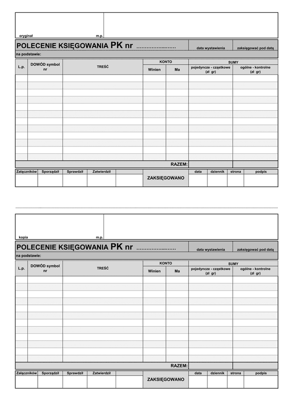 Polecenia księgowania sporządza się z użyciem skrótów: