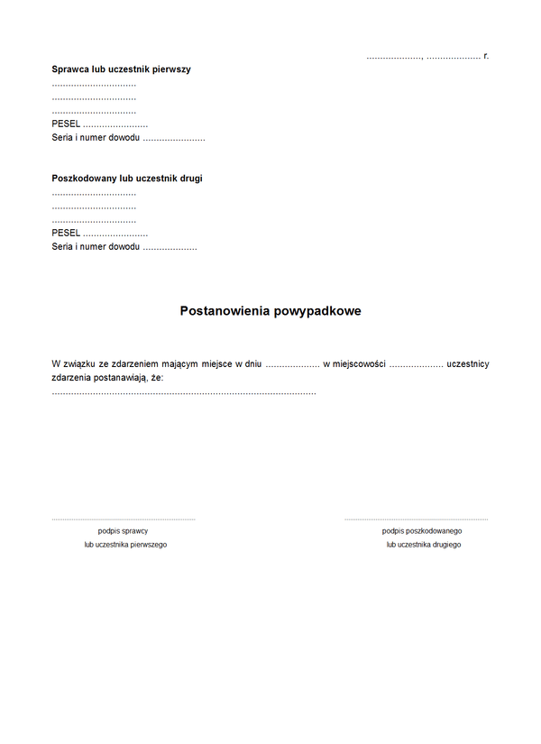 Nie ma obowiązku by postanowienia powypadkowe spisywać na druku przekazany, przez zakład ubezpieczeń sprawcy, choć jest to działanie prawidłowe.