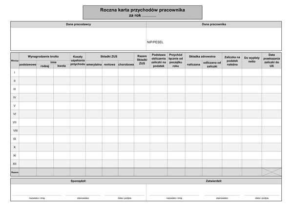 Przepisy dotyczące prowadzenia rocznej karty przychodów pracownika nie wymagają bezpośrednio, aby znalazł się na niej podpis pracownika. Karta jest traktowana jako wewnętrzny dokument ewidencyjny pracodawcy, używany głównie do rozliczeń podatkowo-składkowych.