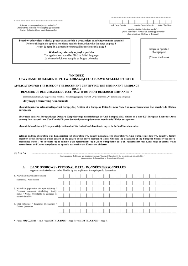 WoWDPPSP Wniosek o wydanie dokumentu potwierdzającego prawo stałego pobytu (UE)