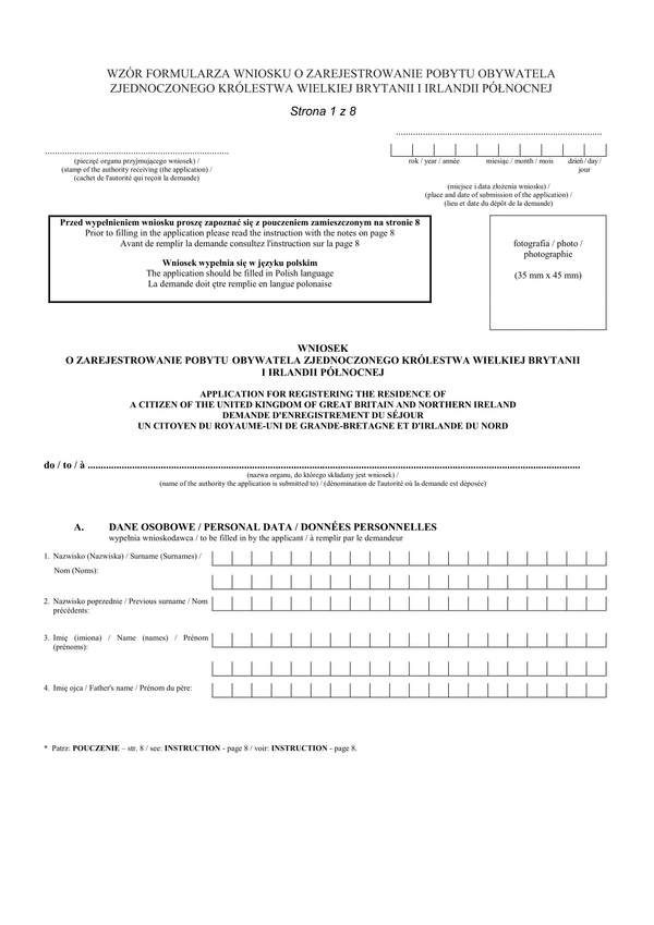 1. Wniosek dotyczy obywatela Zjednoczonego Królestwa Wielkiej Brytanii i Irlandii Północnej objętego Umową o Wystąpieniu Zjednoczonego Królestwa Wielkiej Brytanii i Irlandii Północnej z Unii Europejskiej i Europejskiej Wspólnoty Energii Atomowej.